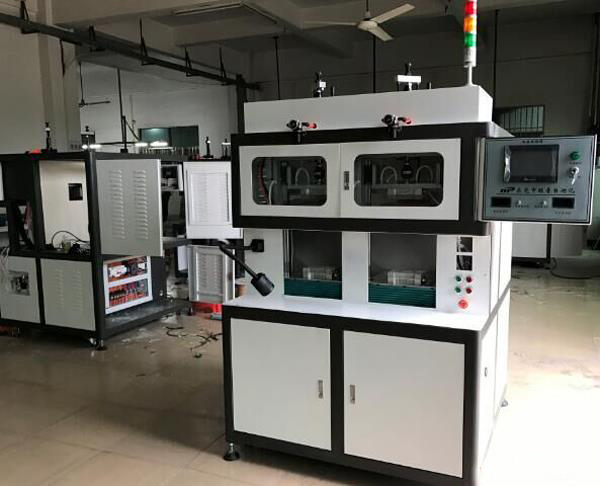 3D玻璃熱彎機是一種能夠對薄板玻璃進行彎曲的機器,其結構主要包括支架、工作臺和夾緊板,工作臺置于支架上,工作臺由底座和壓板構成,底座通過鉸鏈與夾緊板相連,底座由座殼、線圈和蓋板組成,線圈置于座殼的凹陷內,凹陷頂部覆有蓋板。使用時由導線對線圈通電,通電后對壓板產生引力,從而實現對壓板和底座之間薄板的夾持。