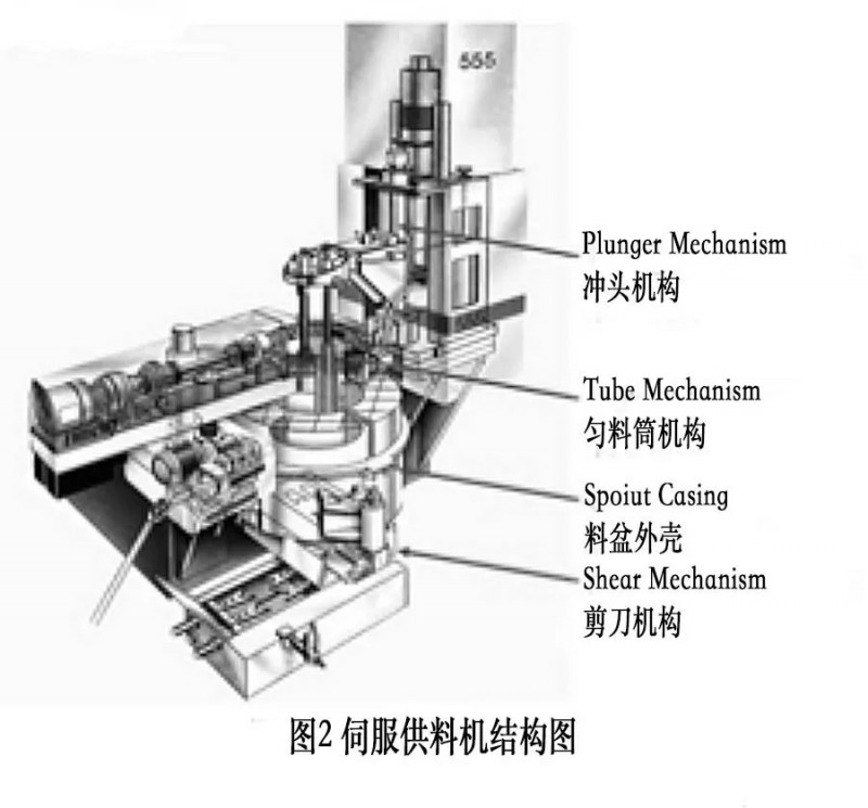 隨著電子計算機技術發展,上世紀末,國外瓶罐玻璃行業陸續推出了伺服供料機,引領了料滴成形的極大改善并取得了快速發展。同時出現了全伺服和在原機械式供料機基礎上增加了部分伺服機構,僅把沖料和剪刀這兩個部分改換成了伺服機構,不僅同樣可實現不同料重的同機生產,也提高了供料機設備的性價比的兩種不同型式的伺服供料機。