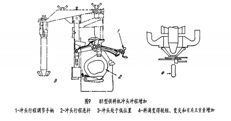 應選用合適的沖頭凸輪來配合,以便獲得盡可能平穩又切合實際的動作,而仍然保持所需要的料滴重量和形狀。如果這個成型動作過猛,則說明沖頭可能過大,或者沖頭行程可能太長,或者是沖頭凸輪可能不適宜于所使用的供料機機速下要求的料滴形狀。