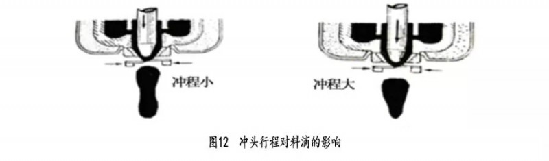 以上是因沖頭沖程的大小變化而形成的料形的狀態,這里就不討論因機速、重量、沖頭凸輪的選擇而存在的差異。
