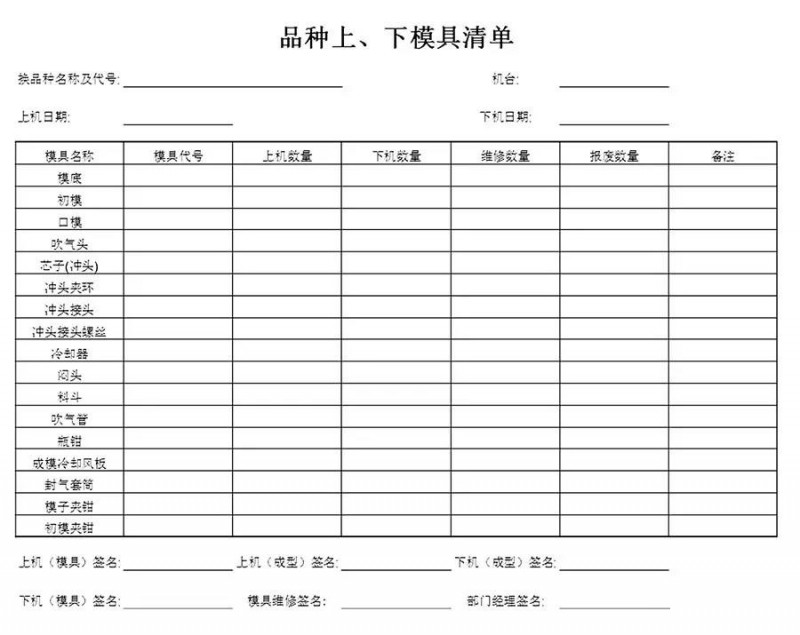 ⑴ 和原材料管理程序一樣,建立模具的采購、驗收、入庫、領(lǐng)用等管理制度。
