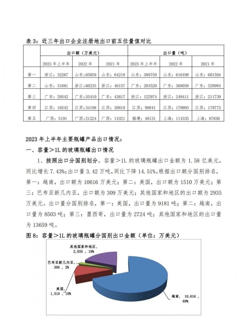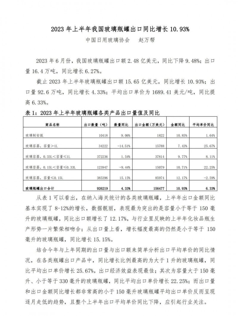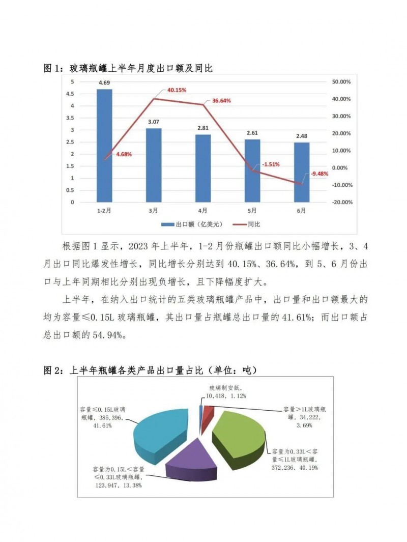2023年上半年我國(guó)玻璃瓶罐出口同比增長(zhǎng)10.93%