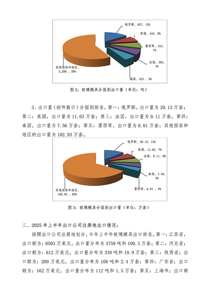 2025年1-6月日用玻璃模具出口情況