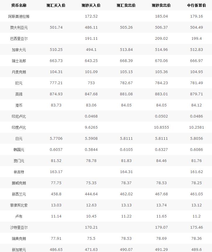 中國銀行外匯牌價